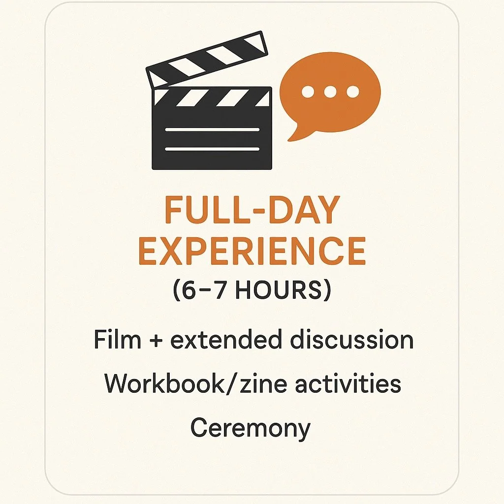A deep, immersive journey that integrates the film, extended group dialogue, and interactive workbook or zine activities. The day concludes with a meaningful ceremony that celebrates growth, empowerment, and shared understanding.