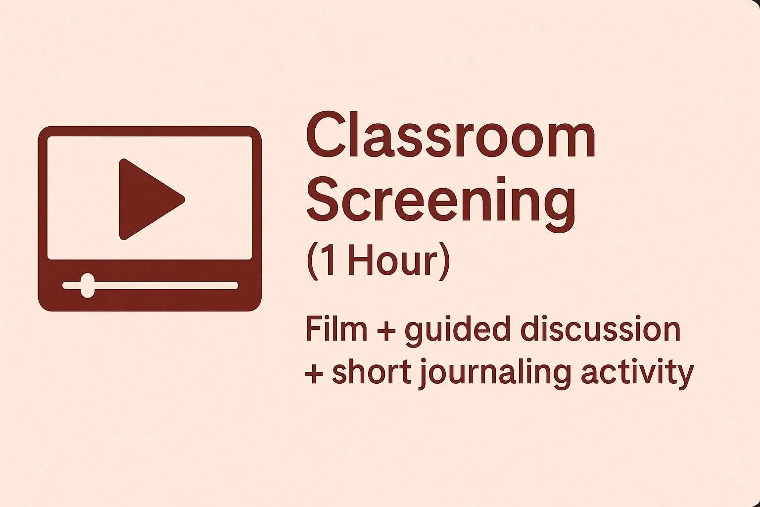 A short, focused learning experience designed for classrooms. Participants watch the film, engage in a guided discussion, and complete a brief journaling activity to reflect on key themes of menstrual health, identity, and emotional awareness.